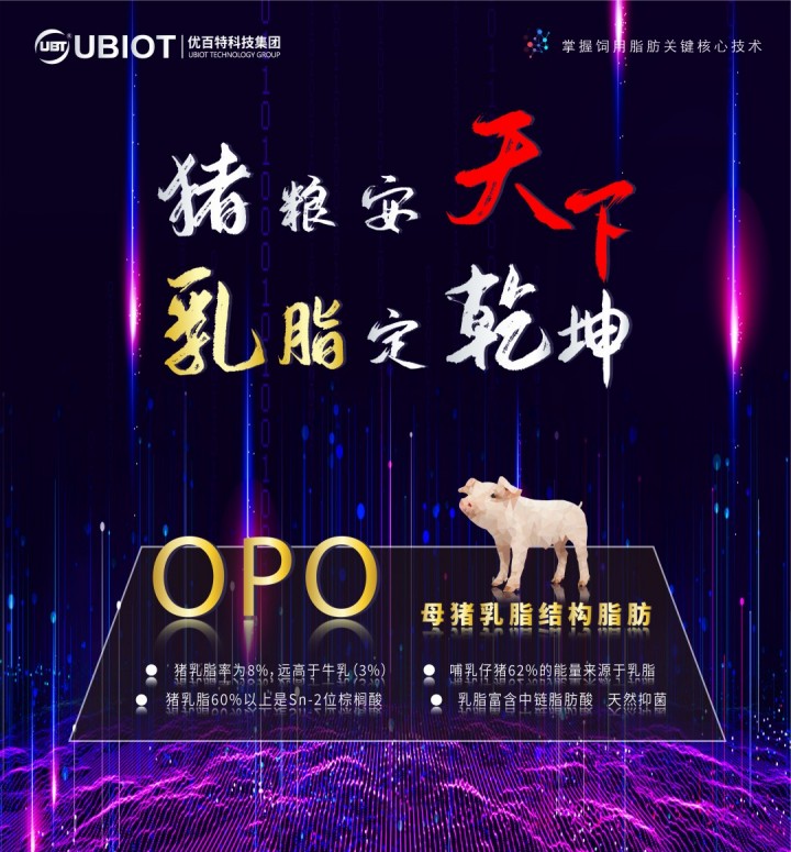 優百特科技開創了極具創新的低成本酯交換技術,成功的將高昂的人用OPO母乳脂肪技術的下放到了飼用級別,創新開發了一個仿生豬乳脂的功能性脂肪酸產品——乳脂能OPO,不斷引起眾多前來討豬用奶粉經的朋友們的關注。相信不久的將來,我們將成為推動行業豬用代乳奶粉產品迭代的一大助力。